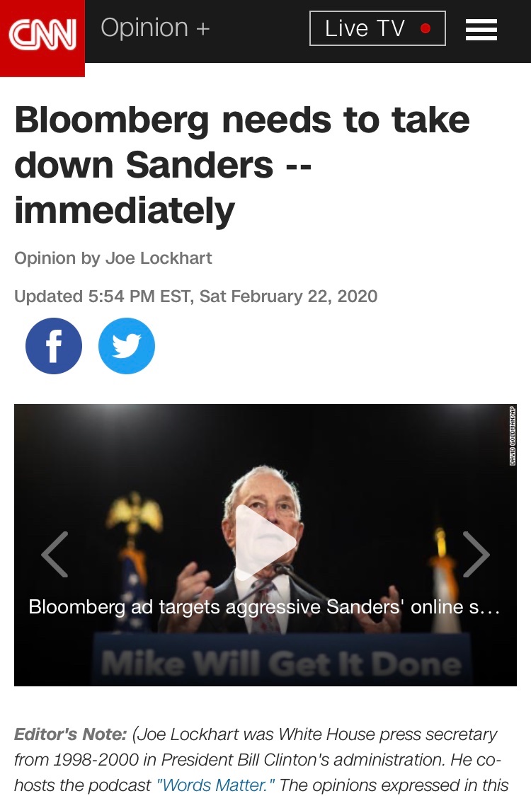 problem is that if sanders wins the nomination, that ensures frump will be a 2 term abomination, I don't know what chances bloomberg has to win the election if nominated, but he's a corrupt ignominy that would be no better than frump.