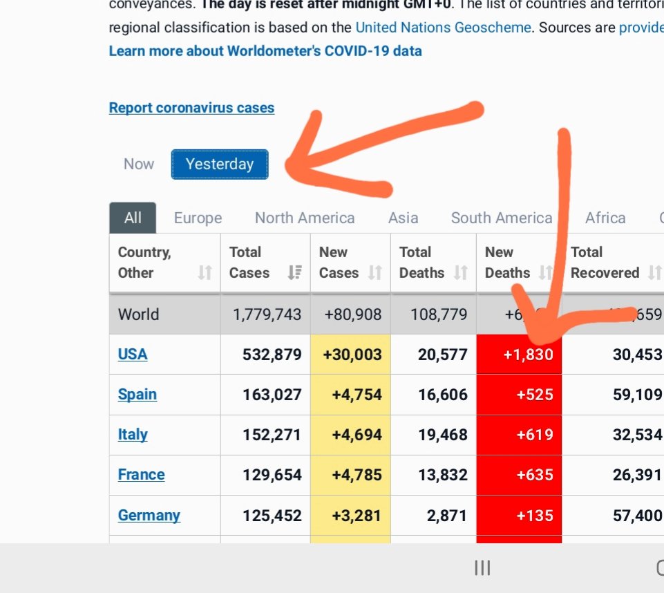 That's the. "Now" figure. The yesterday figure is 1830 deaths.Scot Dutchy wrote: ↑Sun Apr 12, 2020 9:28 amWho believes the USA had only three deaths yesterday? Or 236 new cases.