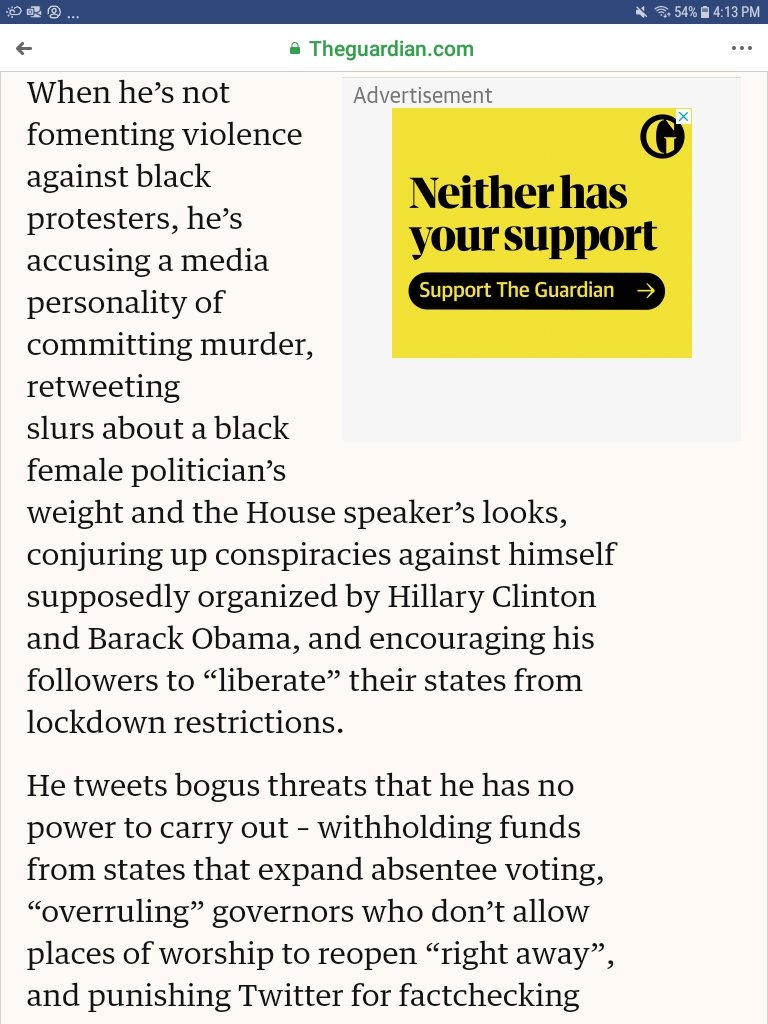 You better be careful, or Trump will hide in a woodshed and tweet at you!Animavore wrote: ↑Mon Jun 01, 2020 10:00 pmhttps://edition.cnn.com/videos/politics ... ovKDdLWklMPolice chief to Trump: If you can't be constructive, keep your mouth shut