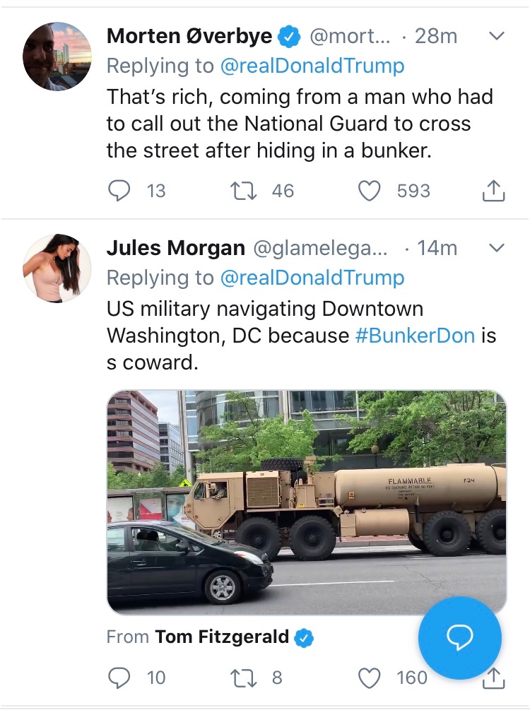 Tonight General Milley, chairman of the Joint Chiefs of staff, talked to reporters from the streets of Washington. National security specialist Tom Nichols noted: “There is absolutely no reason for the Chairman to be walking the streets right now. This is not even remotely in the tradition of U.S. civil-military relations.”