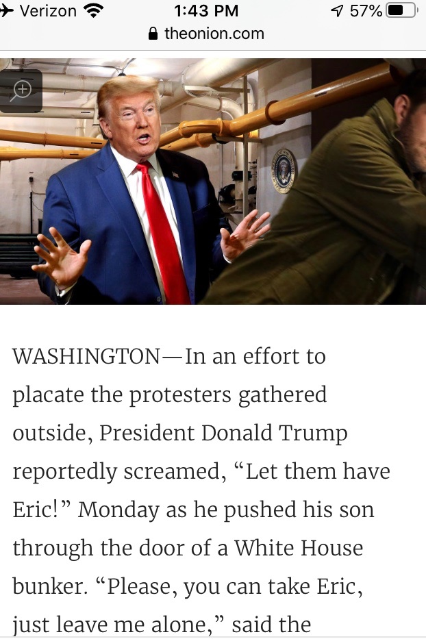 https://www.commondreams.org/news/2020/ ... NdUckyjQLAWill Bunch of the Philadelphia Inquirerwrote in a column late Monday that Trump's speech in the Rose Garden represented "the moment we've been dreading since that escalator ride down Trump Tower five years ago this month—that's been slowly building brick by brick as Donald Trump tore down the rule of law, abused the presidency to enrich himself, and grabbed the bully pulpit of the White House to divide America with racism, sexism and xenophobia."