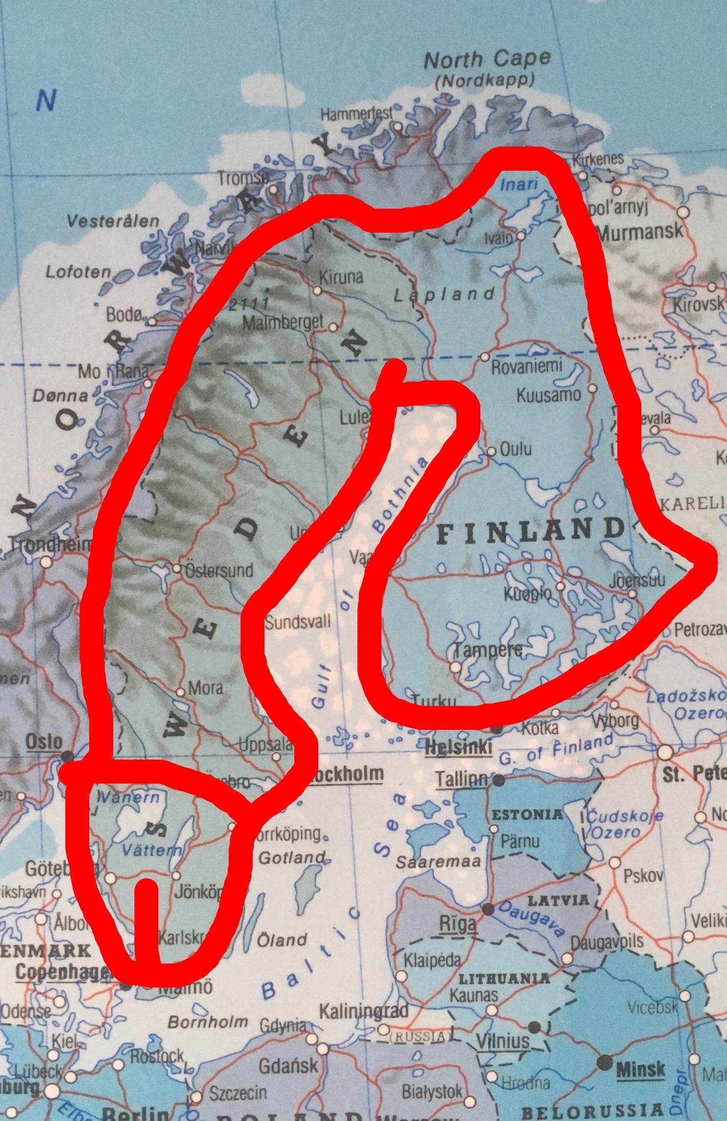 We have this feeling about Sweden. But it also makes Finland the testicles.