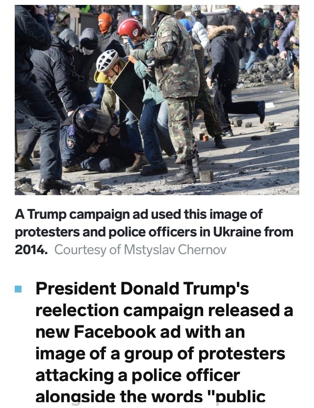 President Donald Trump's reelection campaign released a new Facebook ad with an image of a group of protesters attacking a police officer alongside the words "public safety vs chaos & violence."