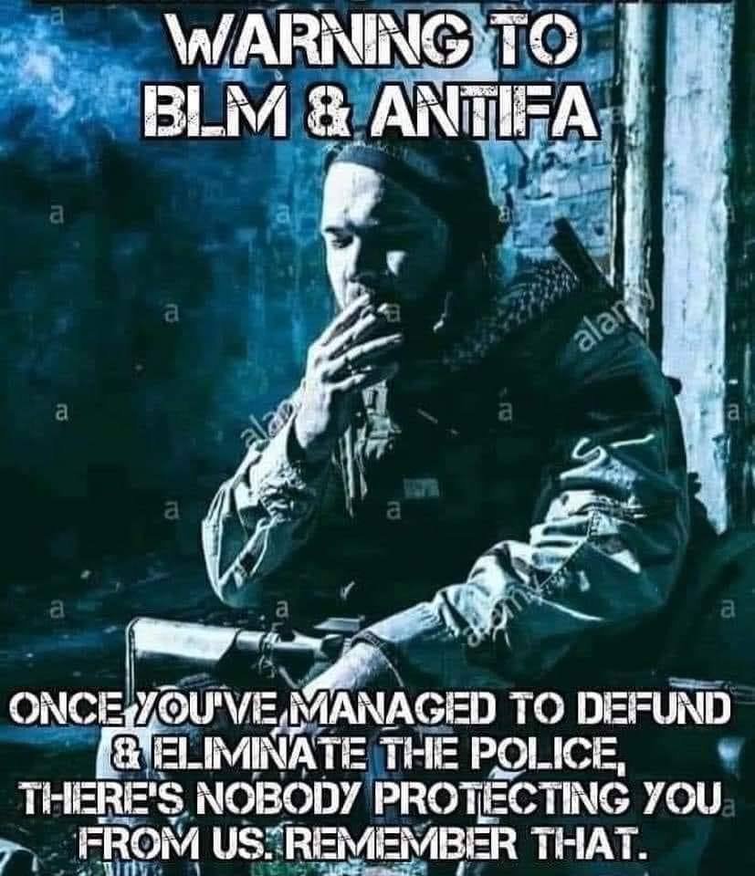 Your Texas buddy might want to consider that BLM is a response to a lack of feeling overly protected by the police in the first place. As for his threat of violence, as I told 42: they only think they've got this because they can't see past the end of their nose. In reality, just about the whole world hates them, and they don't got that, it's not even close.