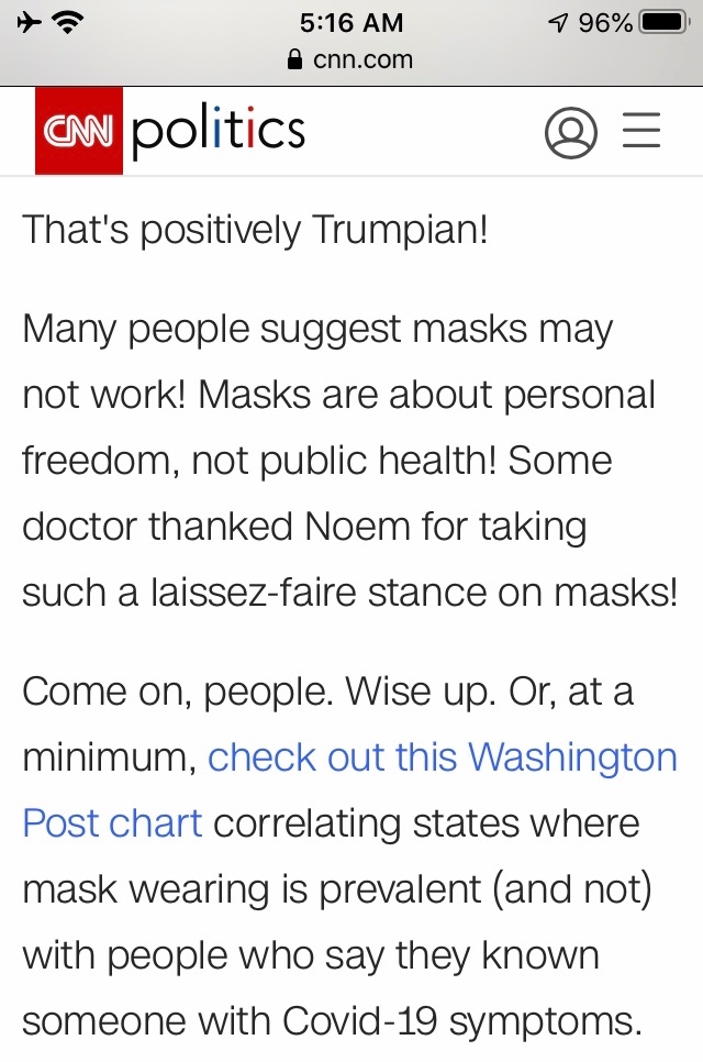 Governor Noem, former Snow Queen, not really into masks.