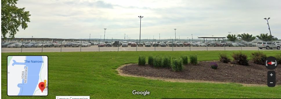 where the above map says Iowa and Nebraska (by the lake, the left pair) there is a long term parking lot, street level