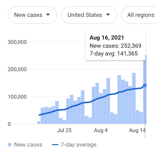 What do any of y'all know about The Delta? (That's what we call it now, THE Delta). WE'RE the fucking Kings of The Delta, all y'all just pikers. Flor-DUH! Flor-DUH! We had 151,415 new cases for the week beginning August 6th. Beat that, any of y'all! Ha! You can't, can you? You know why? Cuz we're Number 1! WE'RE NUMBER 1!