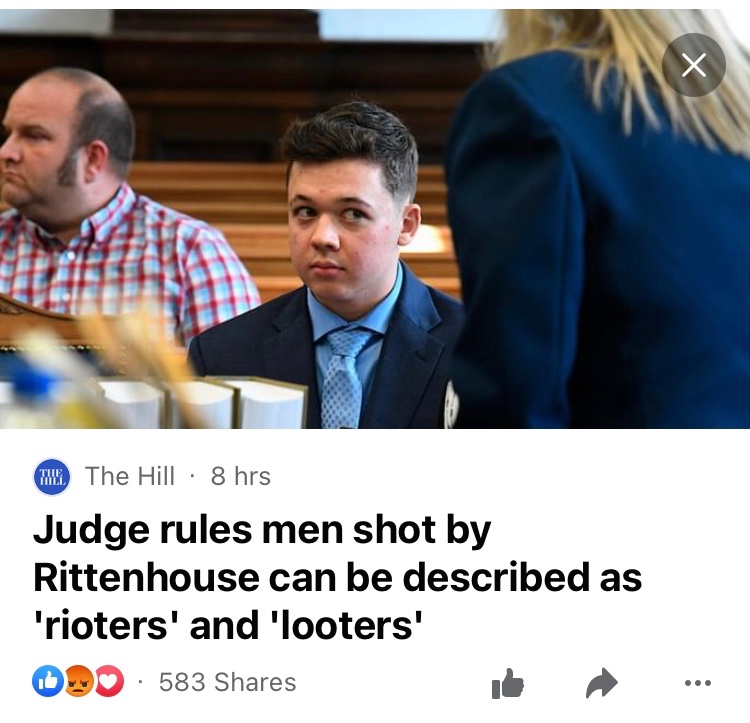 Actually, I don't. What I regard as important is that someone decided it was a good idea to take an interstate trip to a protest armed with an assault style semi automatic rifle and finish up killing two unarmed protesters. I do not understand why you can't see how utterly bizarre that scenario is.Sean Hayden wrote: ↑Thu Nov 11, 2021 12:25 pmHermit, I'm not sure why you think the number of attackers is critically important.