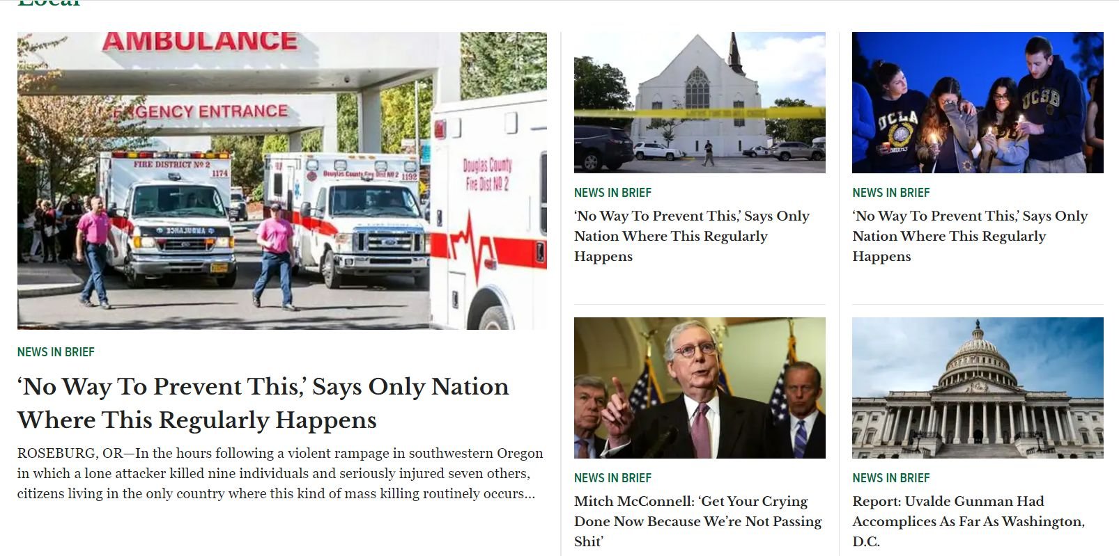 WASHINGTON—In a press conference addressing the community of Uvalde, TX, Senate Minority Leader Mitch McConnell reportedly urged those affected Thursday to get their crying done now because he wouldn’t be passing shit. “Go ahead and shed some tears, trot out the families of the victims, do whatever the fuck you’re going to do, and then we’re going to go back to pretending none of this happened,” said McConnell, urging the nation to go online and post whatever little impassioned rants or photographs of the bereaved they had, since he and his fellow lawmakers had decided their response to all of this would continue to be absolutely fucking nothing. “And yes, we know the parents of the victims will be burying 19 young children in the coming few weeks. Seriously, none of it matters to us. I don’t know how to make it any clearer. We simply couldn’t care less.” At press time, McConnell had returned to the podium to add that his thoughts and prayers were, of course, with the community and the grieving families.