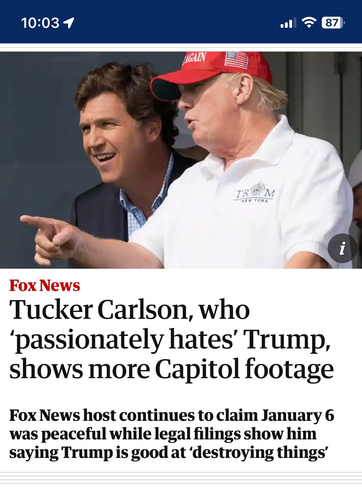 Fox News not having a great deal of success in their attempt to fend off the consequences of their blatant and demonstrably conscious lying about the Dominion voting machines (= billions of simoleons in damages). Fox News tried to get a summary judgement to have the suit thrown out, instead the judge granted summary judgement to Dominion on pretty much everything except 'actual malice' ('high degree of awareness of falsity'). The evidence already presented by Dominion should make that an easy decision for the jury.