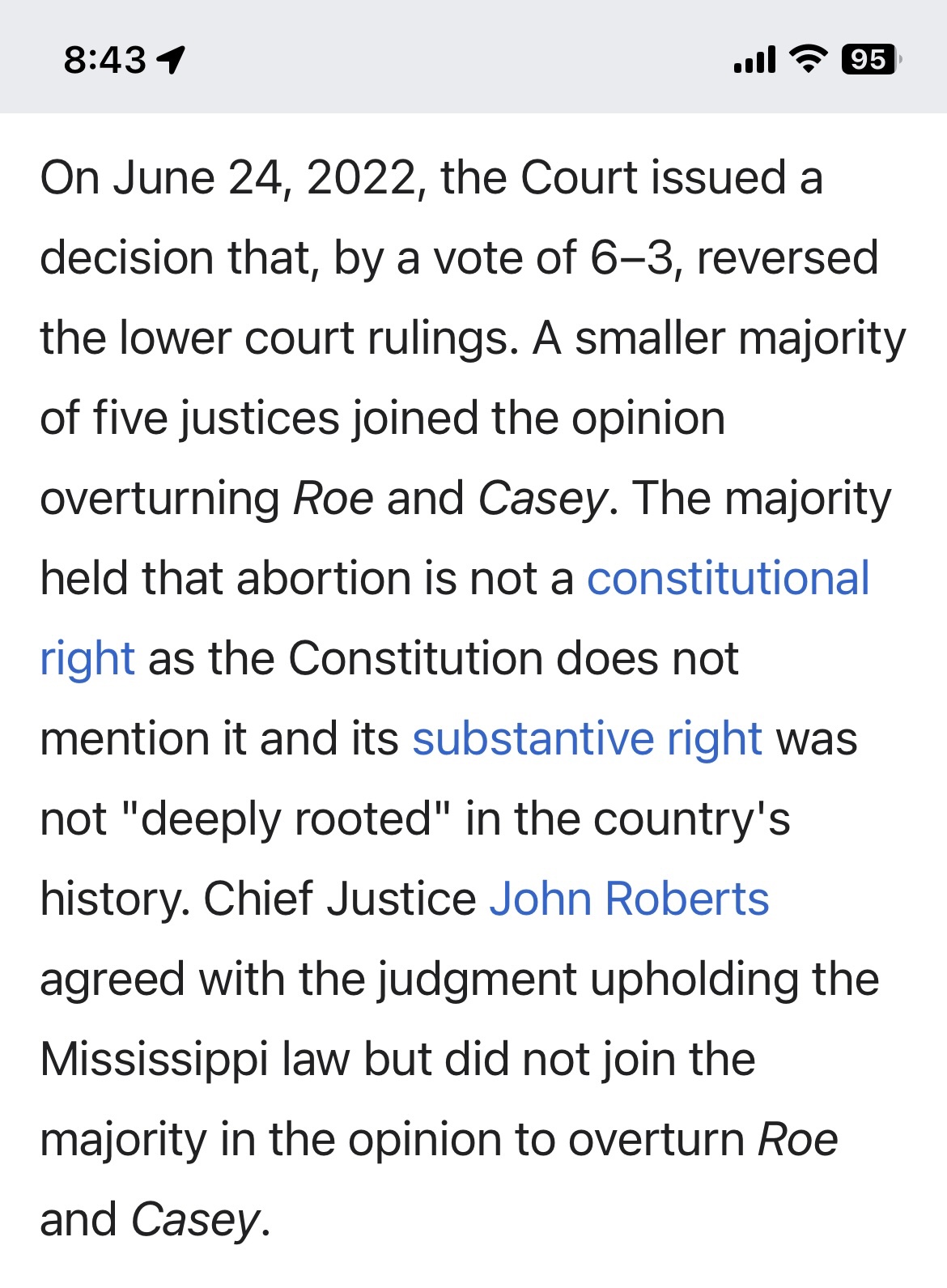 Had to look this up. Roberts two votes were inconsistent. He seems to say some kind of right to abortion is allowed. But then states can randomly rule the week where it is allowed. The original court came up with a week where the fetus would likely survive as the end week.