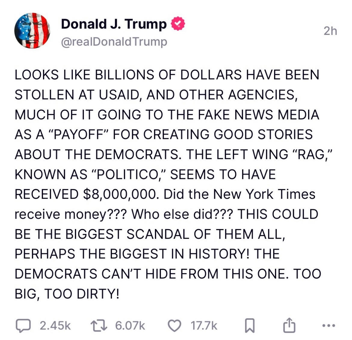 USAID funneled money to left wing media. He says.