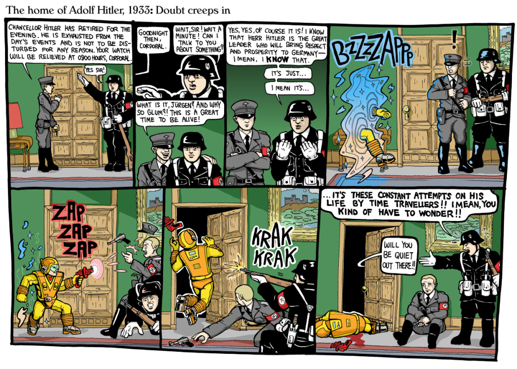 I shot the fucker who was trying to shoot the Hitler child, because if he had succeeded my grandfather wouldn't have gone to war and met my grandmother- so how else would a poor man from Stoke meet a woman in Austria in the 1940s?Tyrannical wrote:Hitler was born, ergo time travel will never happen.